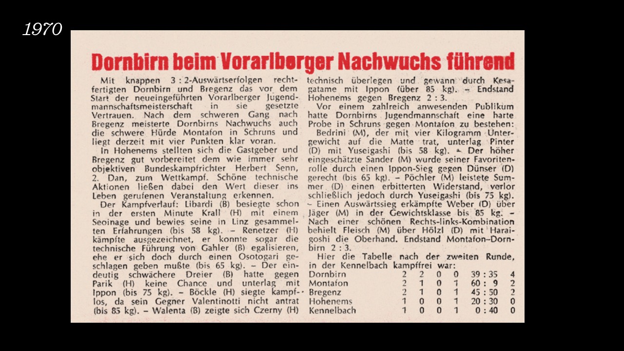 1965: 24. April, Gründungsversammlung, Judoclub M24 Dornbirn